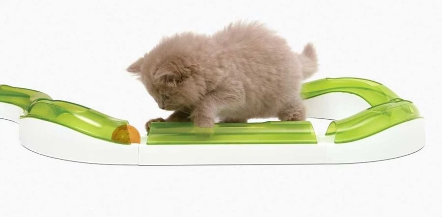 Cat It Circuit de jeu Wave Senses est un circuit avec vague pour occuper votre chat. Le but ? suivre la balle qui file Ă toute vitesse !
