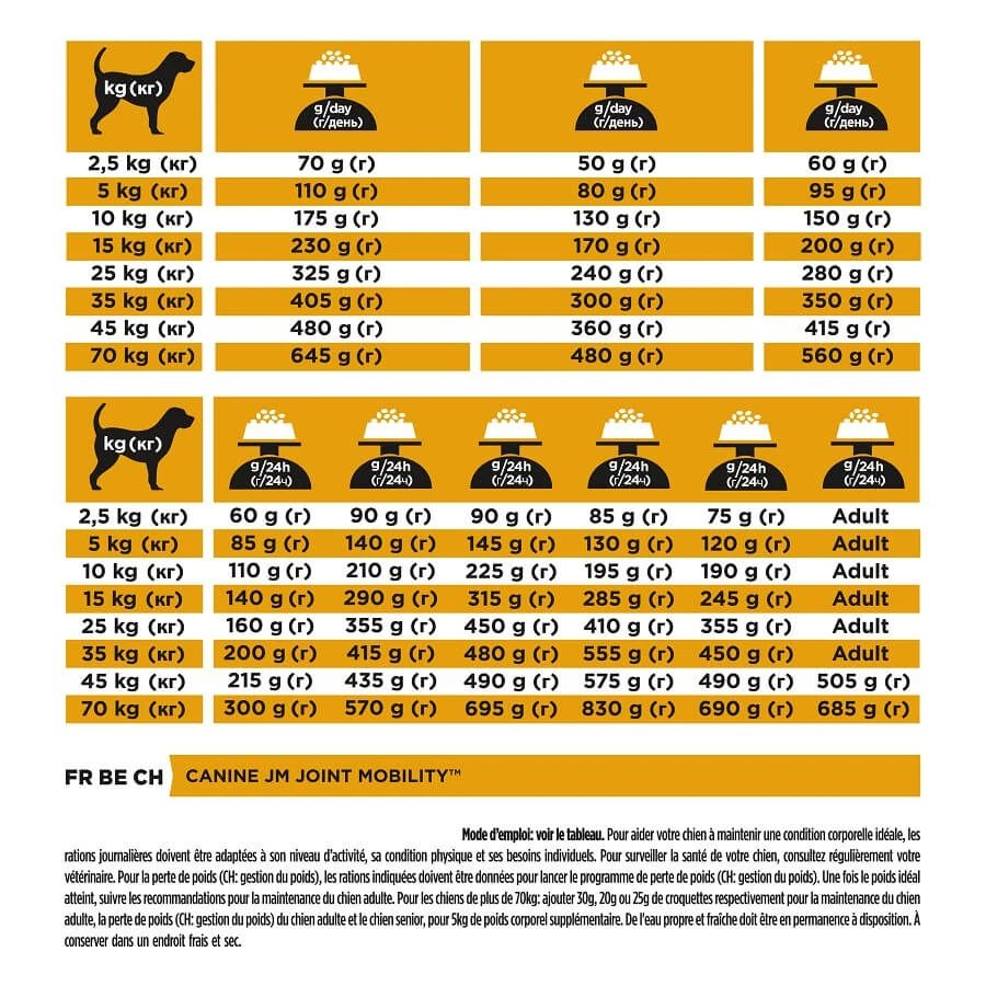 Purina Proplan Chien Joint Mobility peut être également utilisé dans le cadre d’un régime amaigrissant ; son rapport protéines/calories élevé et sa teneur réduite en matières grasses permettent d’obtenir et de conserver un état corporel idéal et de soulager ainsi les articulations ; les études ont montré que cet aliment permettait d’améliorer la mobilité des races aux articulations fragiles.