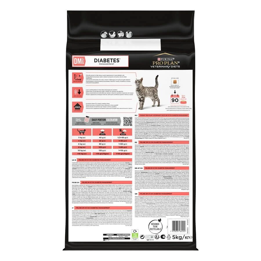 Purina Proplan PPVD Féline DM Diabete est un aliment diététique complet très appétent pour chat adulte, spécialement formulé pour la régulation de l’apport de glucose (Diabète sucré) avec une faible teneur en glucides rapidement digestibles.