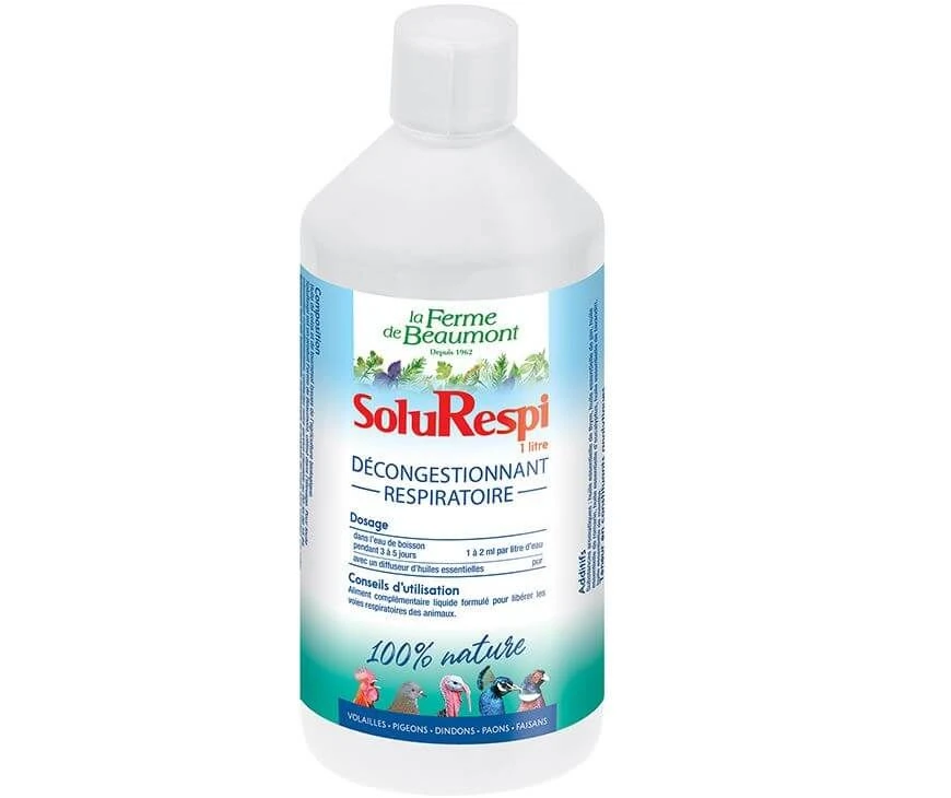 SoluRespi est une solution à base d’huiles essentielles à donner dans l’eau de boisson ou à diffuser dans l’air ambiant du poulailler. Ce produit contribue à libérer les voies respiratoires des animaux.