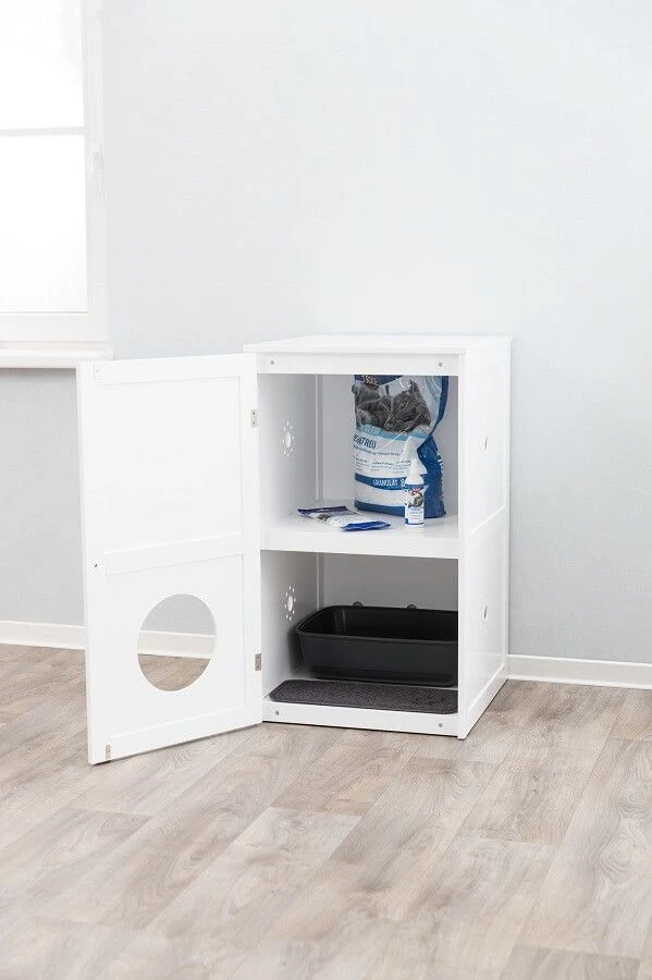 Composé de deux compartiments vous pourrez y mettre le bac à litière mais également y ranger le nécessaire de litière.